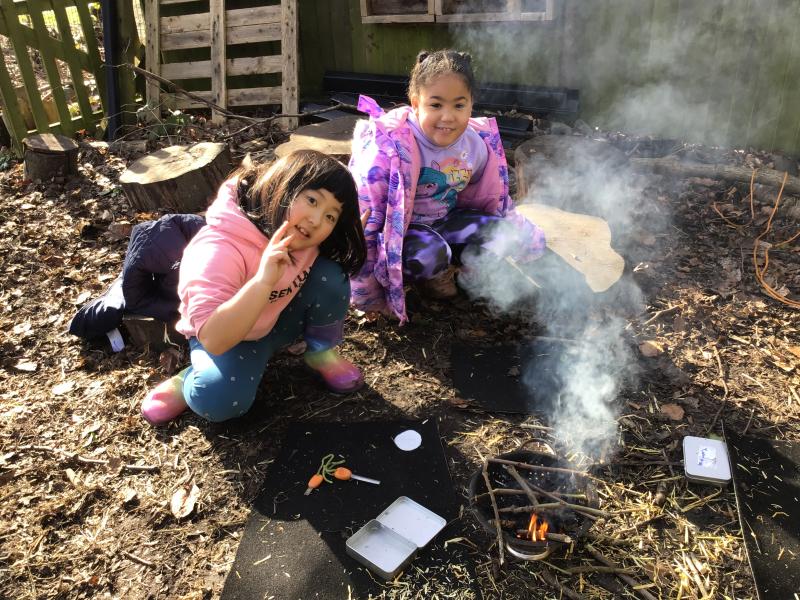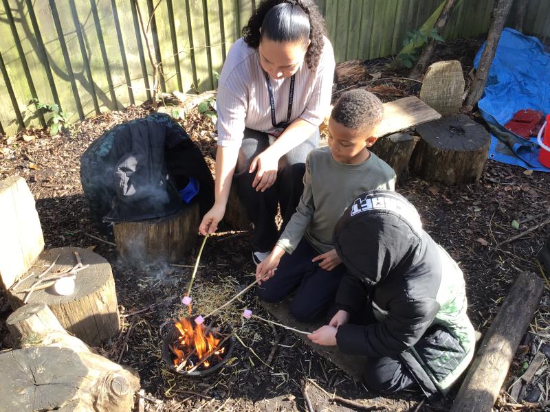 We were so lucky to be able to have some of our grown ups join us for this session, building fires and roasting marshmallows.