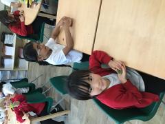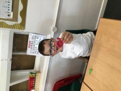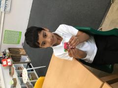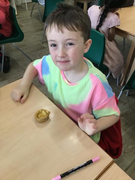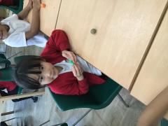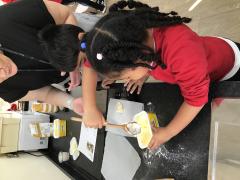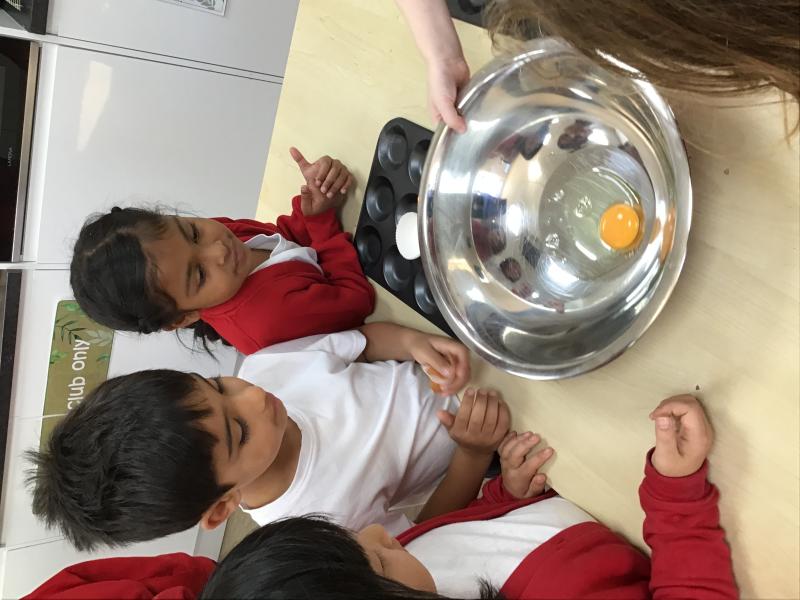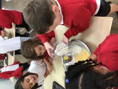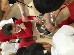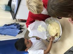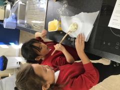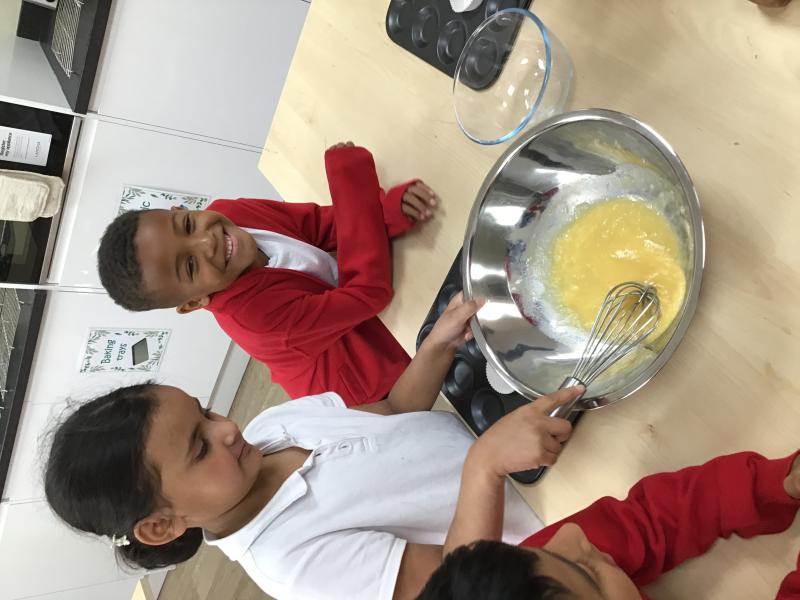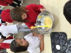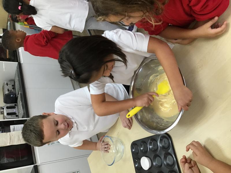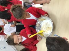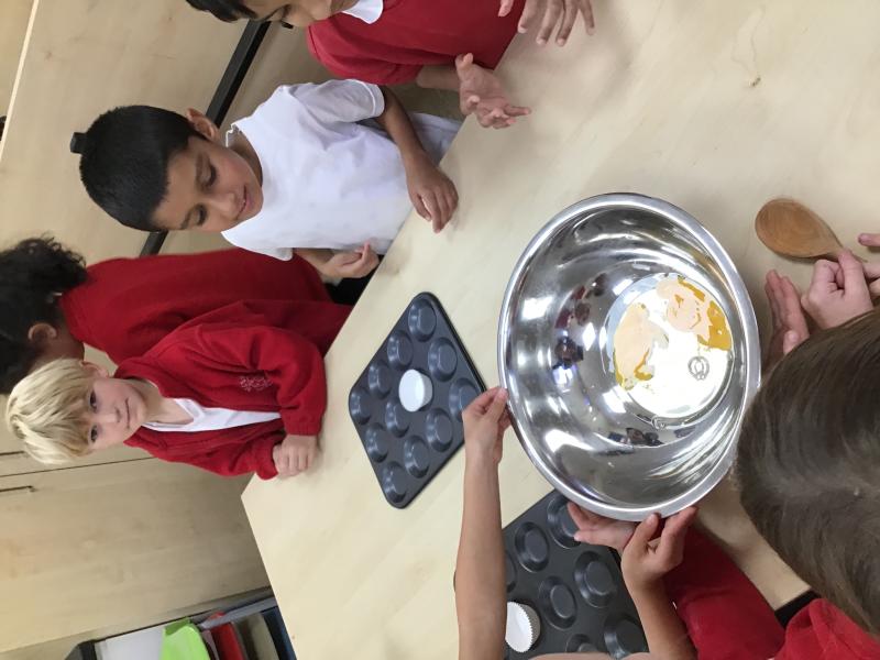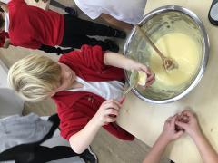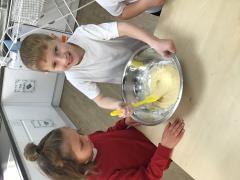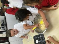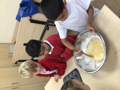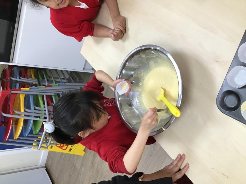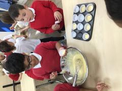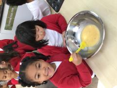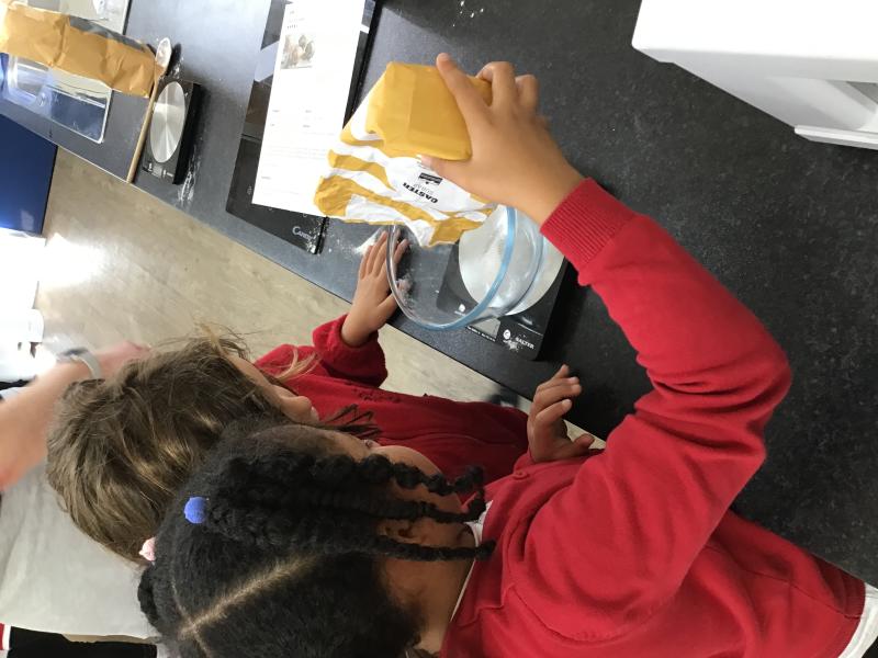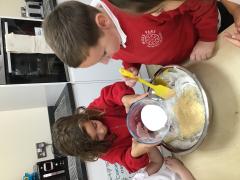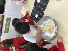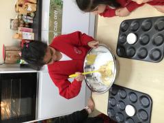 We carefully weighed the ingredients and took turns to mix the ingredients together, showing our school value of teamwork.