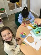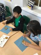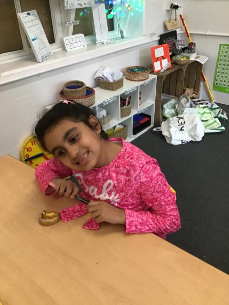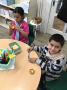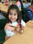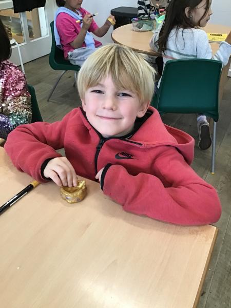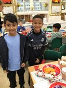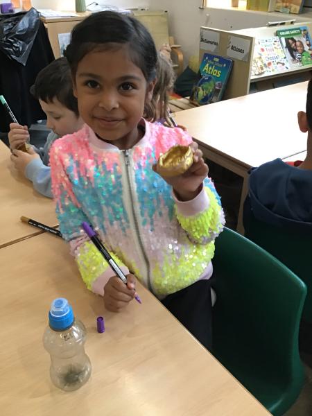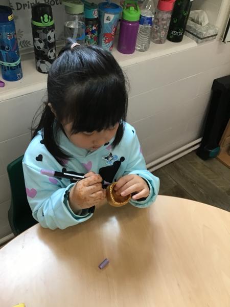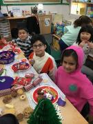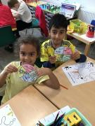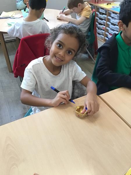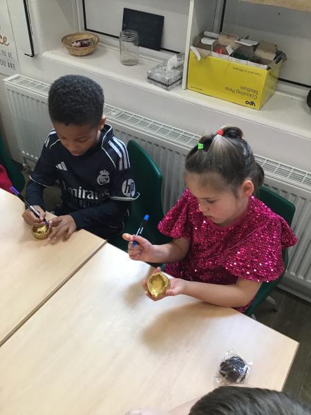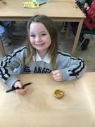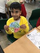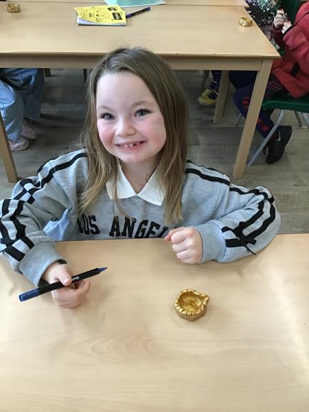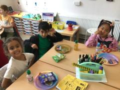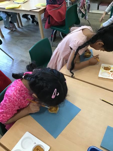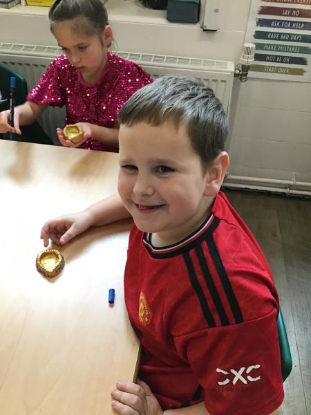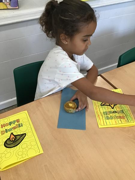 We dressed in our best bright clothes, made cards, played party games and made/decorated our very own diya lamps out of clay!
